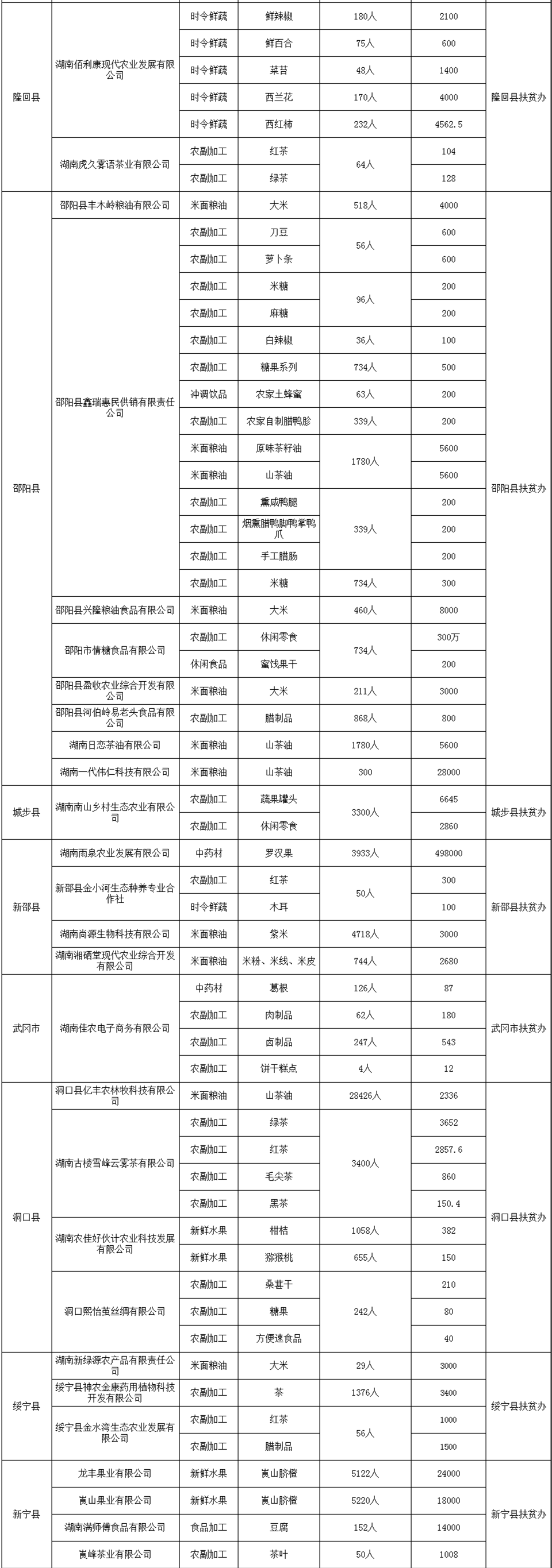 邵阳市隆回县、邵阳县、城步苗族自治县、新邵县、武冈市、洞口县、绥宁县、新宁县等8个县的新鲜水果、米面粮油等产品在公示名单中。这些公示的全国扶贫产品覆盖县有你的家乡吗?一起来看看吧!